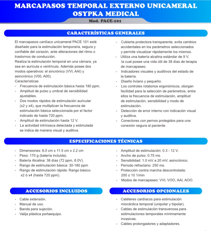 Hemos incorporado un nuevo producto a nuestra línea, el marcapasos externo unicameral.