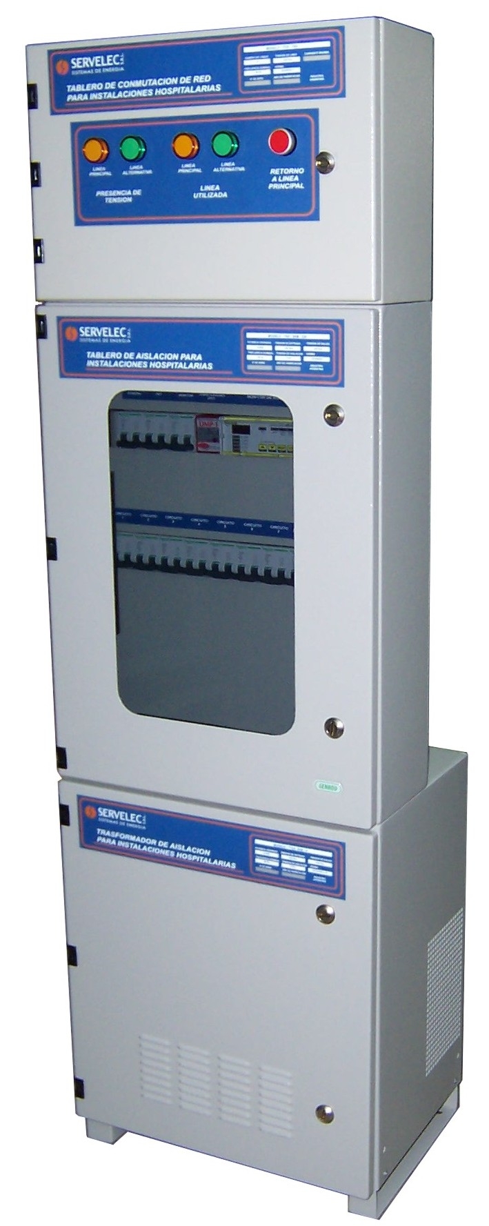 En los quirófanos, salas de cuidados intensivos e intermedios de hospitales, clínicas y sanatorios es obligatoria la instalación de una red aislada para la distribución de la energía eléctrica. Una red aisladaasegura la continuidad del servicio eléctrico frente a la denominada primera falla y previene al personal médico contra la ocurrencia de un macroshock. Además, esta red, complementada con un monitor de aislación, que asegura la supervisión permanente de la misma, mas una adecuada estructura equipotencial, previene la ocurrencia del microshock en los pacientes, determinada como causa frecuente de fibrilación cardiaca. Las instalaciones eléctricas de estas salas del Grupo 2, deben estar sometidas a exigencias muy estrictas de seguridad y cumplir con lo establecido por la Asociación Electrotécnica Argentina en su "Reglamentación para la ejecución de instalaciones eléctricas en inmuebles - Locales para usos médicos y salas externas de los mismos" AEA90364 - Sección 710. Con los Tableros de Aislación para Instalaciones Hospitalarias, Servelec SRL se propone dar una solución que integre las partes más sensibles de esta instalación, ofreciendo un producto estándar debidamente ensayado y protocolizado, listo para instalar.