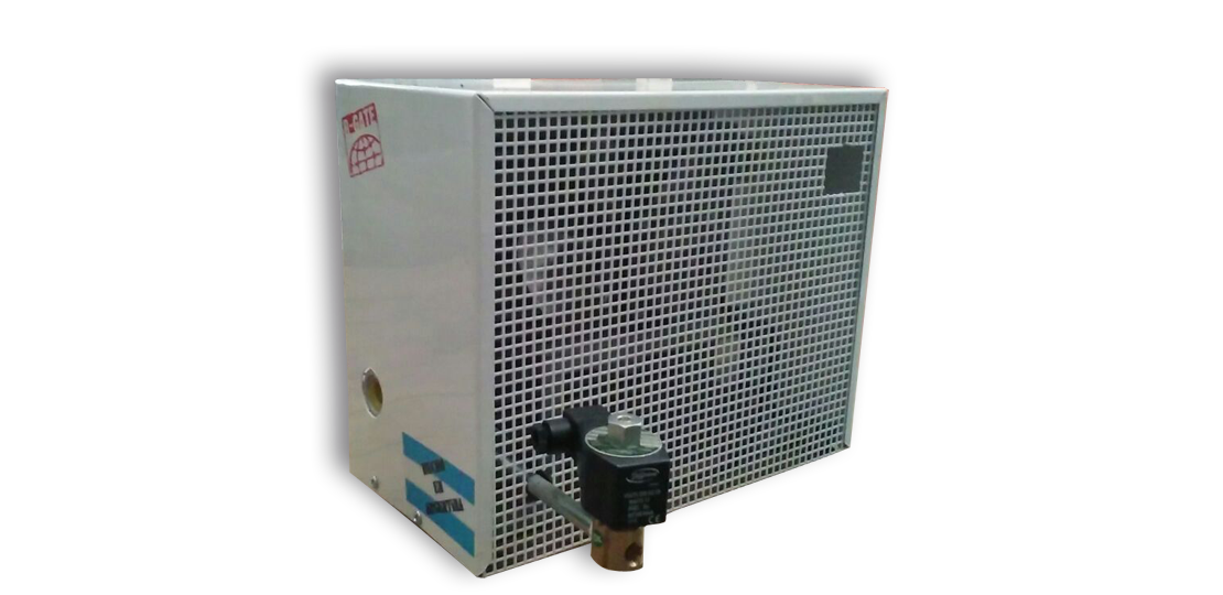 Sistema posenfriador de gases, construido en celdas de aluminio aletado, con purga electrónica, gabinete metálico de pie o de mesada, con forzador de aire, alimentación 220/380V, capacidad de 500 L/min a 2000 L/min.
